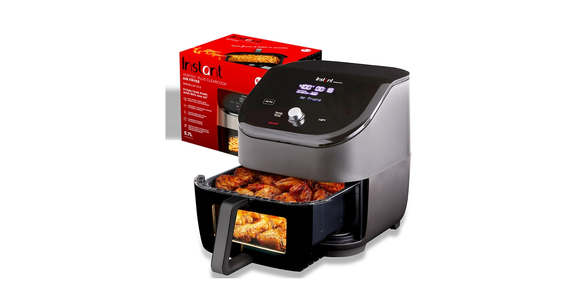 The Instant Vortex Plus ClearCook Air Fryer offers a convenient and versatile way to cook a variety of meals. Its 6-quart capacity is suitable for families, and the ClearCook window, combined with an internal light, allows you to monitor cooking progress without interrupting the process. Enjoy crispy results with EvenCrisp technology, which uses 9...